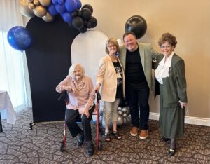 Photo 1 : Fondatrices de l’AFRCA : Paulyne Poulin, Monique Boulet et Claudette Pépin ainsi que Maxime Landry, chanteur-animateur de la soirée